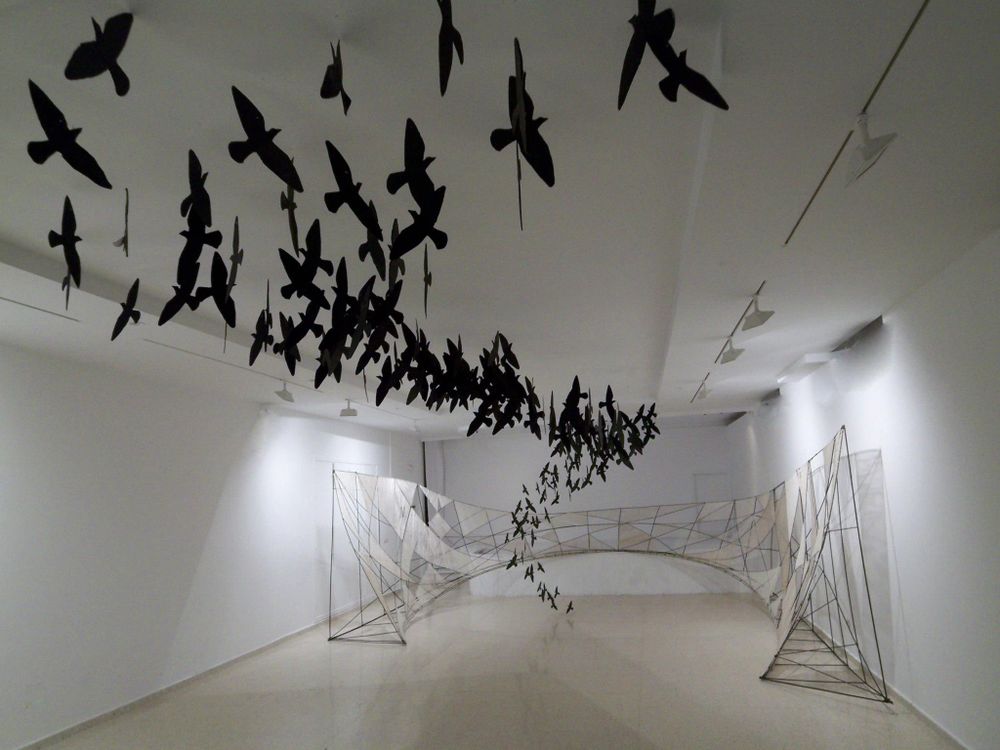 La bellísima instalación/reflexión que Paco Aguilar propone se erige, al igual que sus otras aportaciones más recientes, en una llamada de atención sobre la depredadora sociedad posindustrial, que nos devora y deshumaniza. Esta aniquilación de valores sociales comporta asimismo la dramática destrucción de nuestros espacios vitales. Si la serenidad de sus lechuzas, búhos, aves y pájaros de todo pelaje y condición, que anidan sabiamente en las creaciones del artista, evocan la libertad de acción y de movimiento, su constatada desaparición también determinará tarde o temprano la supervivencia de esta sociedad codiciosa e insatisfecha.